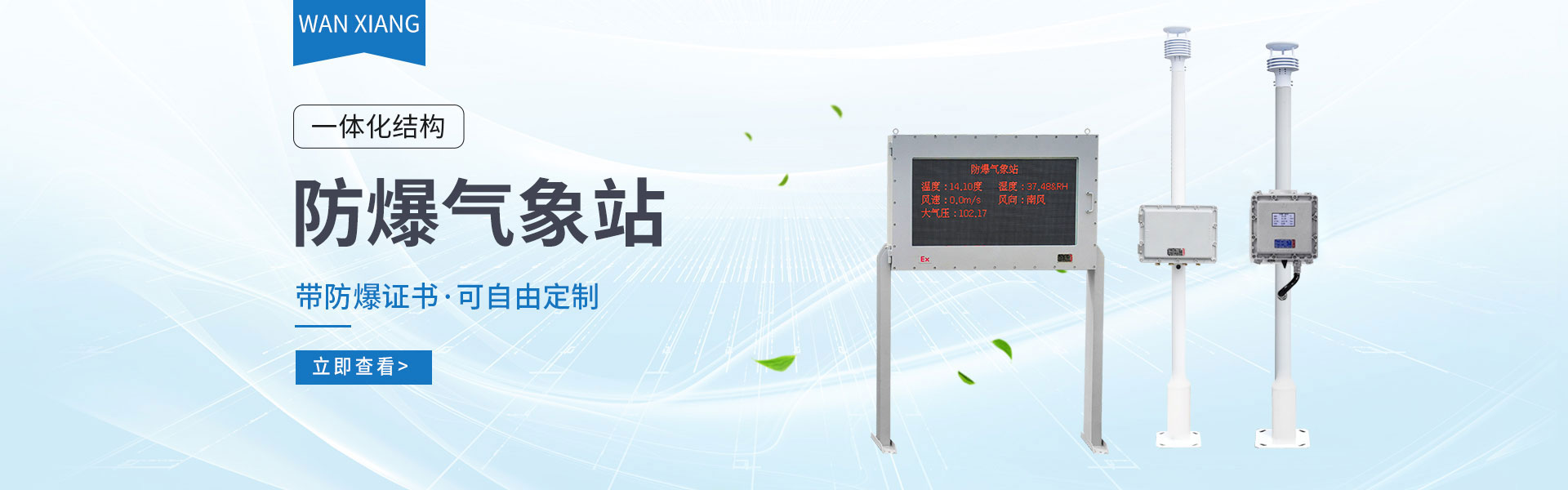 山東萬(wàn)象環(huán)境科技有限公司官網(wǎng)主要產(chǎn)品有防爆氣象站,校園氣象站,農(nóng)業(yè)氣象站,負(fù)氧離子監(jiān)測(cè)站,超聲波氣象站,歡迎咨詢13276362033!